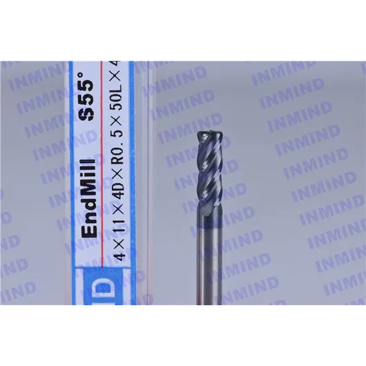 hrc55 cortador de radio de esquina en milésimas de extremo de 4 flautas con recubrimiento de pecado de tamaño de grano de 0.6 um