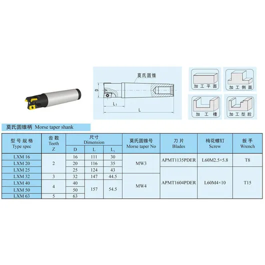 inserts ccmt fraise en bout indexable à fente en t avec tige droite tige plus conique